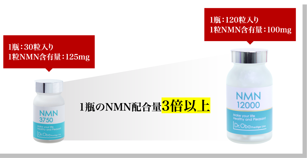 そこで新たに、大容量サイズ「Dr.Oba Prestige Line NMN12000」が登場!